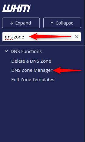 - Once logged in, enter DNS ZONE in the search box on the left hand side and click DNS Zone Manager.