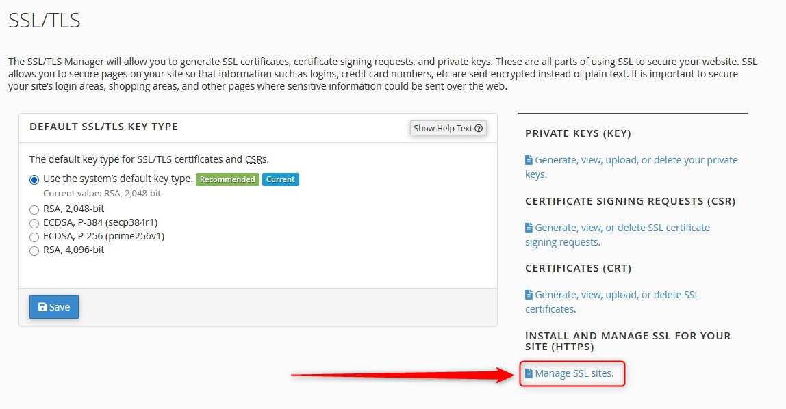 - Then click: Manage SSL sites